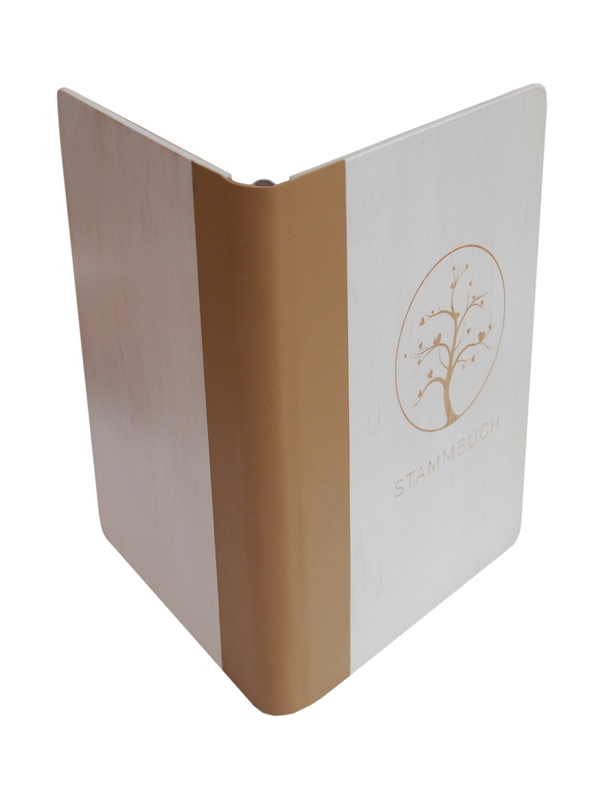 "Stammbuch aus Holz, weiss mit hellbraun"