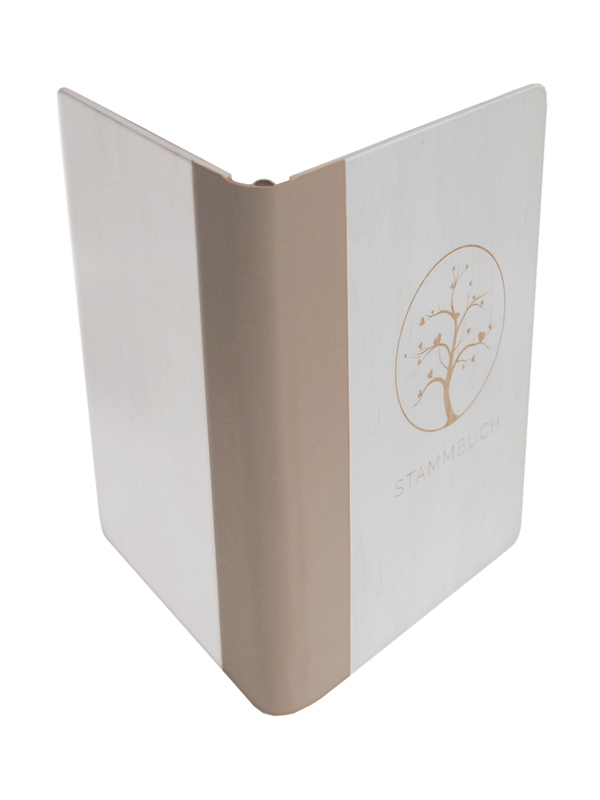 Stammbuch aus Holz, weiss mit beige