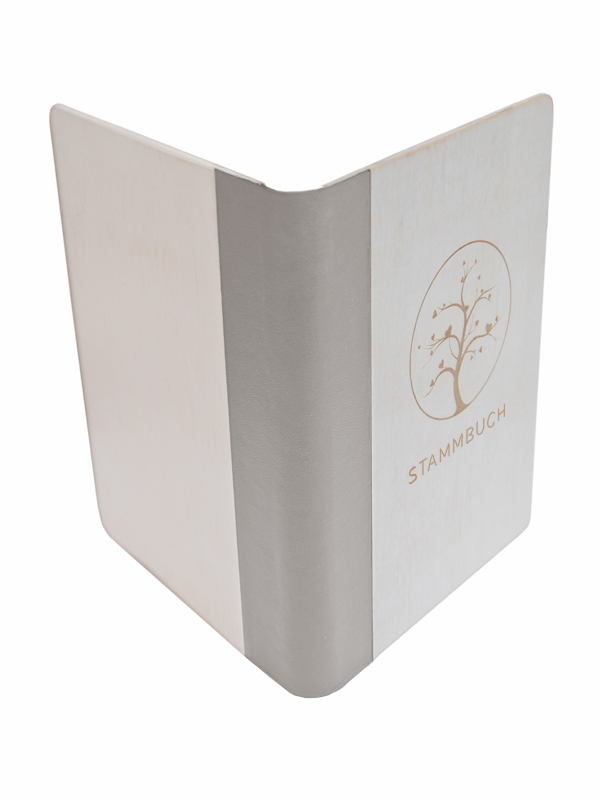 Stammbuch aus Holz, weiss mit grau